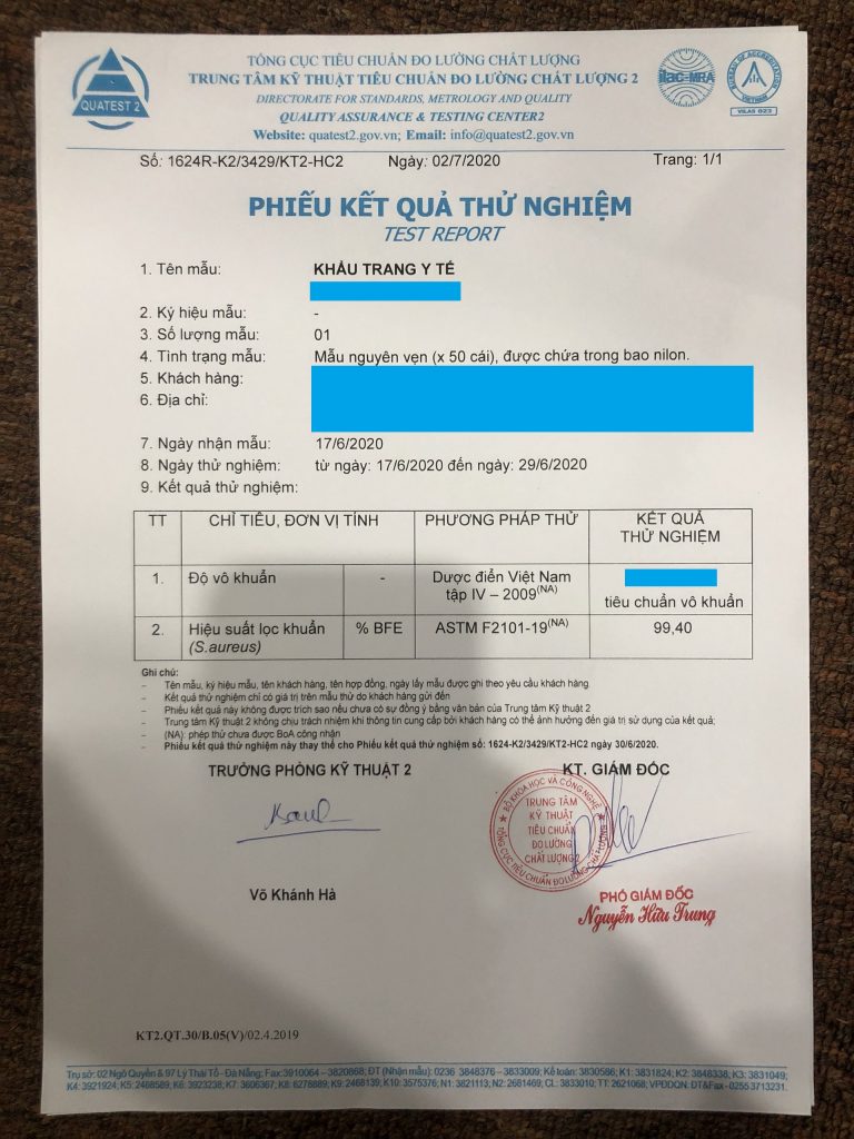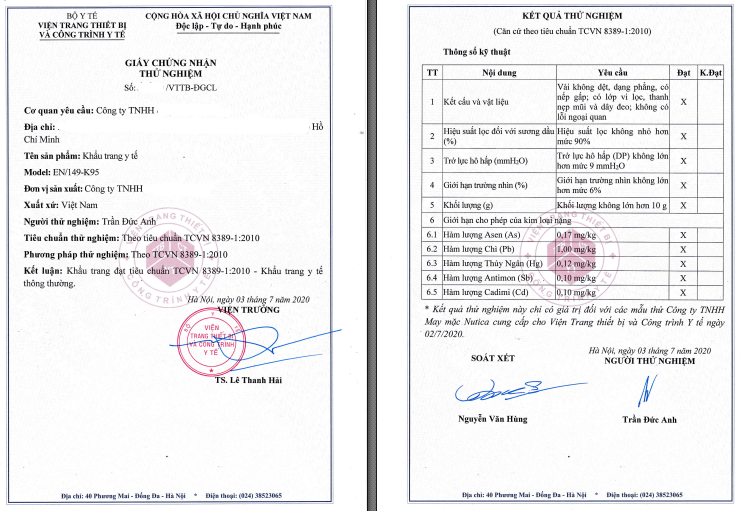 Cuối cùng, nếu doanh nghiệp kê khai khẩu trang N95 có chức năng kháng khuẩn cần kiểm nghiệm thêm Khả năng bảo vệ chống nhiễm khuẩn và Độ vô khuẩn theo TCVN 8389 – 2