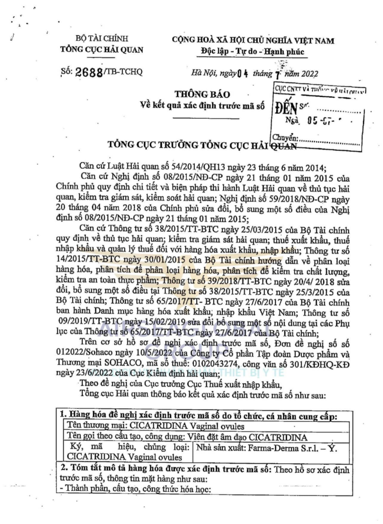 II, THỦ TỤC NHẬP KHẨU VIÊN ĐẶT ÂM ĐẠO
