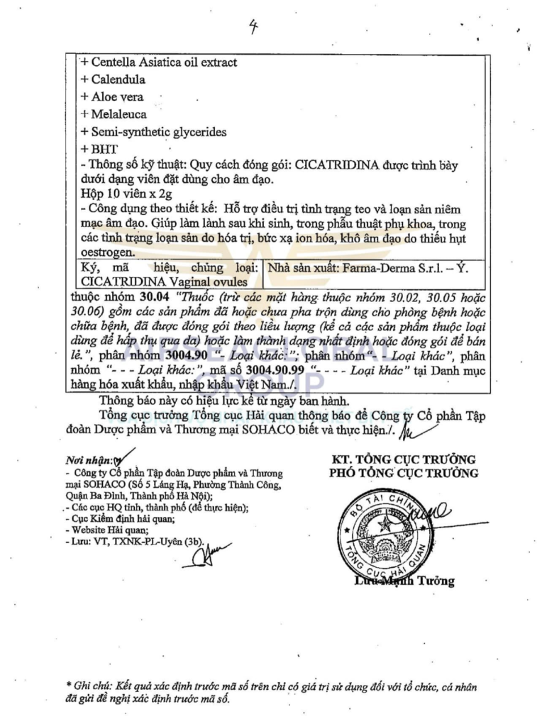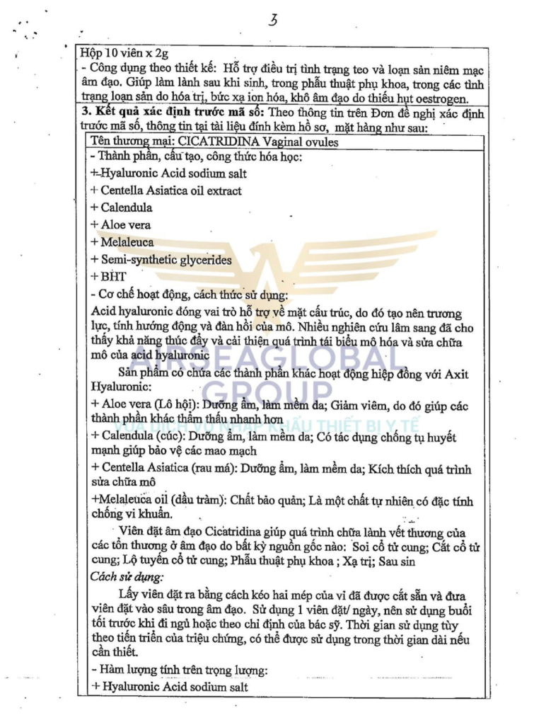 HS CODE VIÊN ĐẶT ÂM ĐẠO: 3004 9099